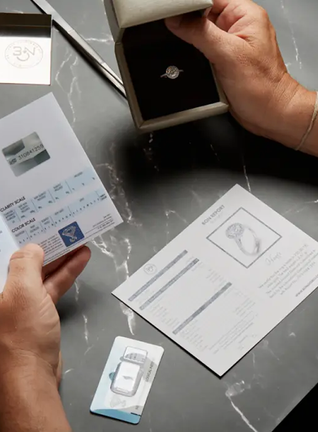 Our experts craft each piece of jewelry with care and precision. You will receive your handmade ring in our exclusive blue package adorned with a starry sky design, accompanied by a GIA or IGI diamond authenticity certificate and selected gadgets, ready for your special moment.